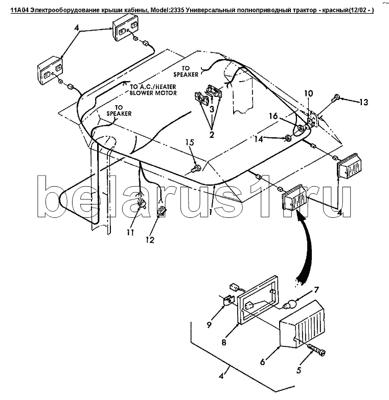 Каталог запасных частей к технике: Versatile серии 2000. 11A04 Электрооборудование крыши кабины