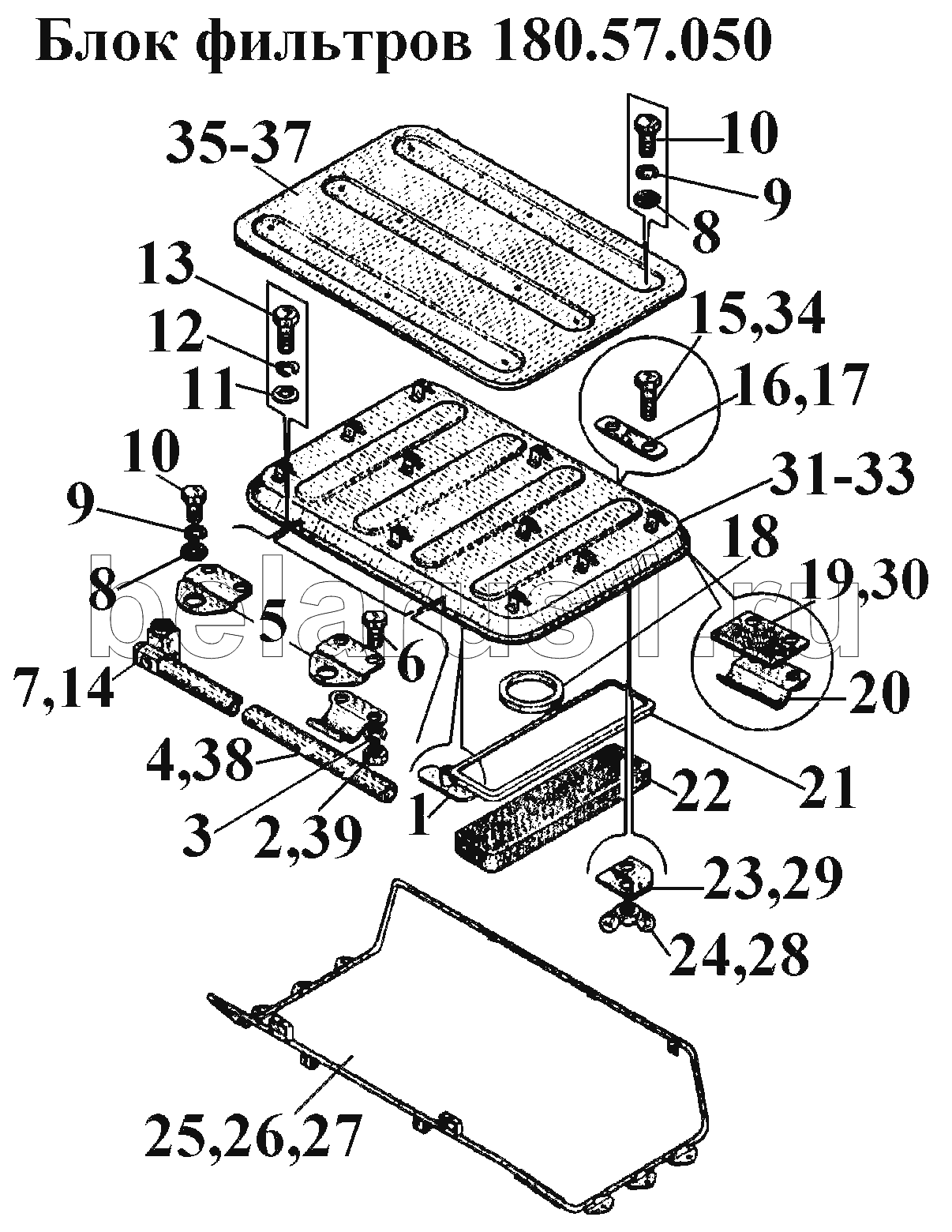 Каталог запасных частей к технике: ВгТЗ ВТ-100Д. Блок фильтров 180.57.050