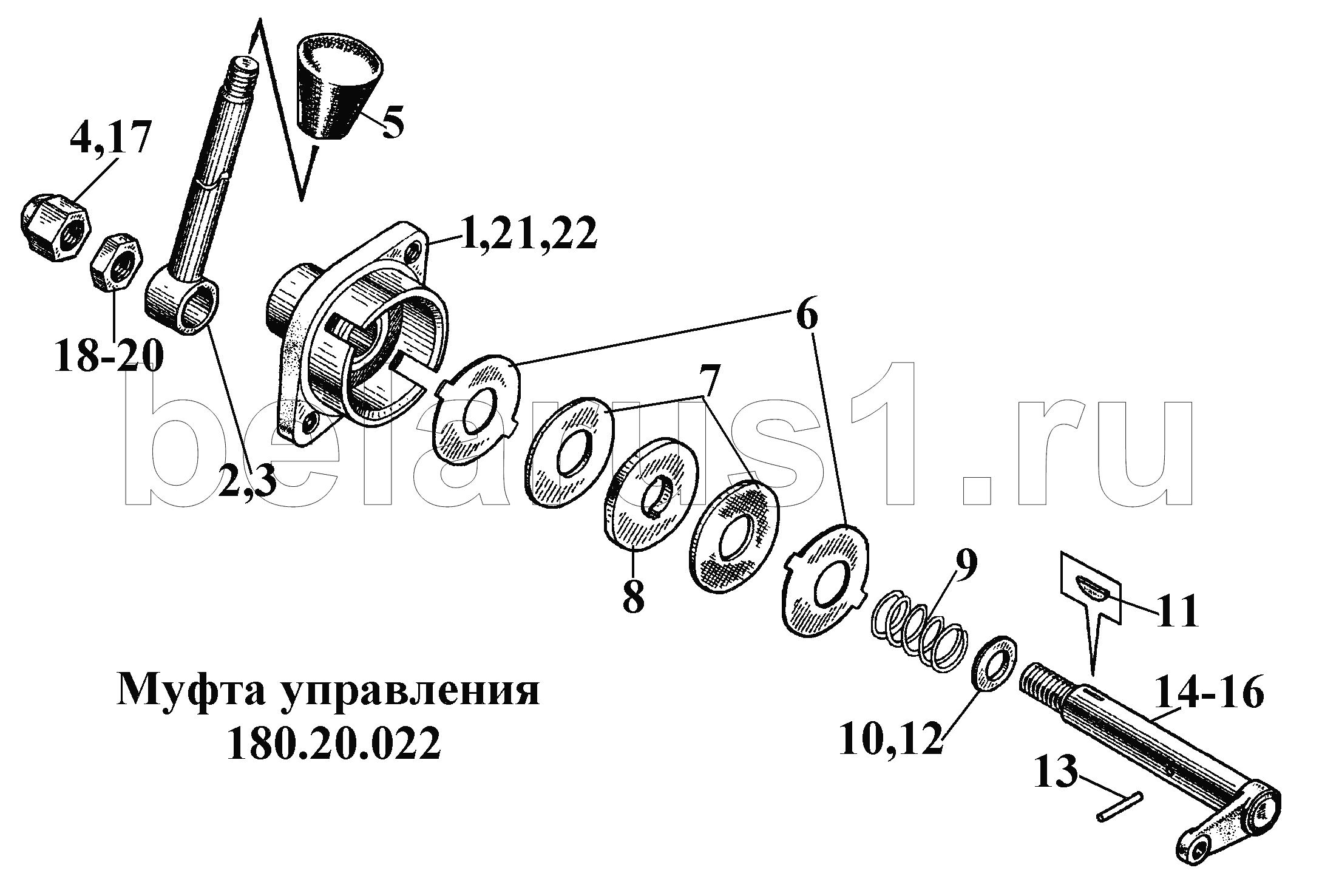 Каталог запасных частей к технике: ВгТЗ ВТ-100Д. Муфта управления 180.20.022