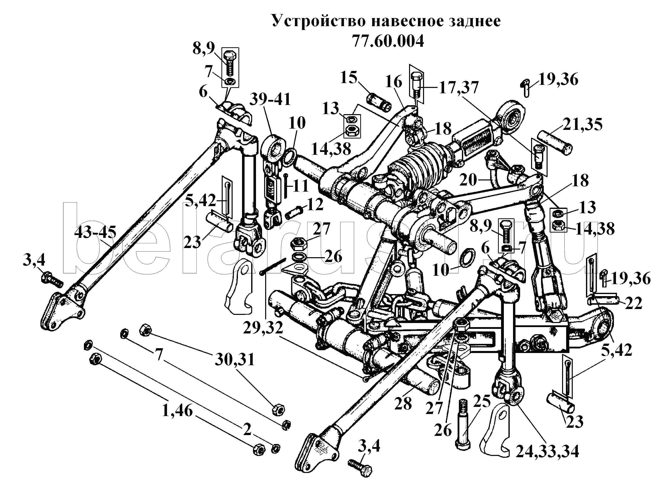 Каталог запасных частей к технике: ВгТЗ ВТ-100Д. Устройство навесное заднее 77.60.004