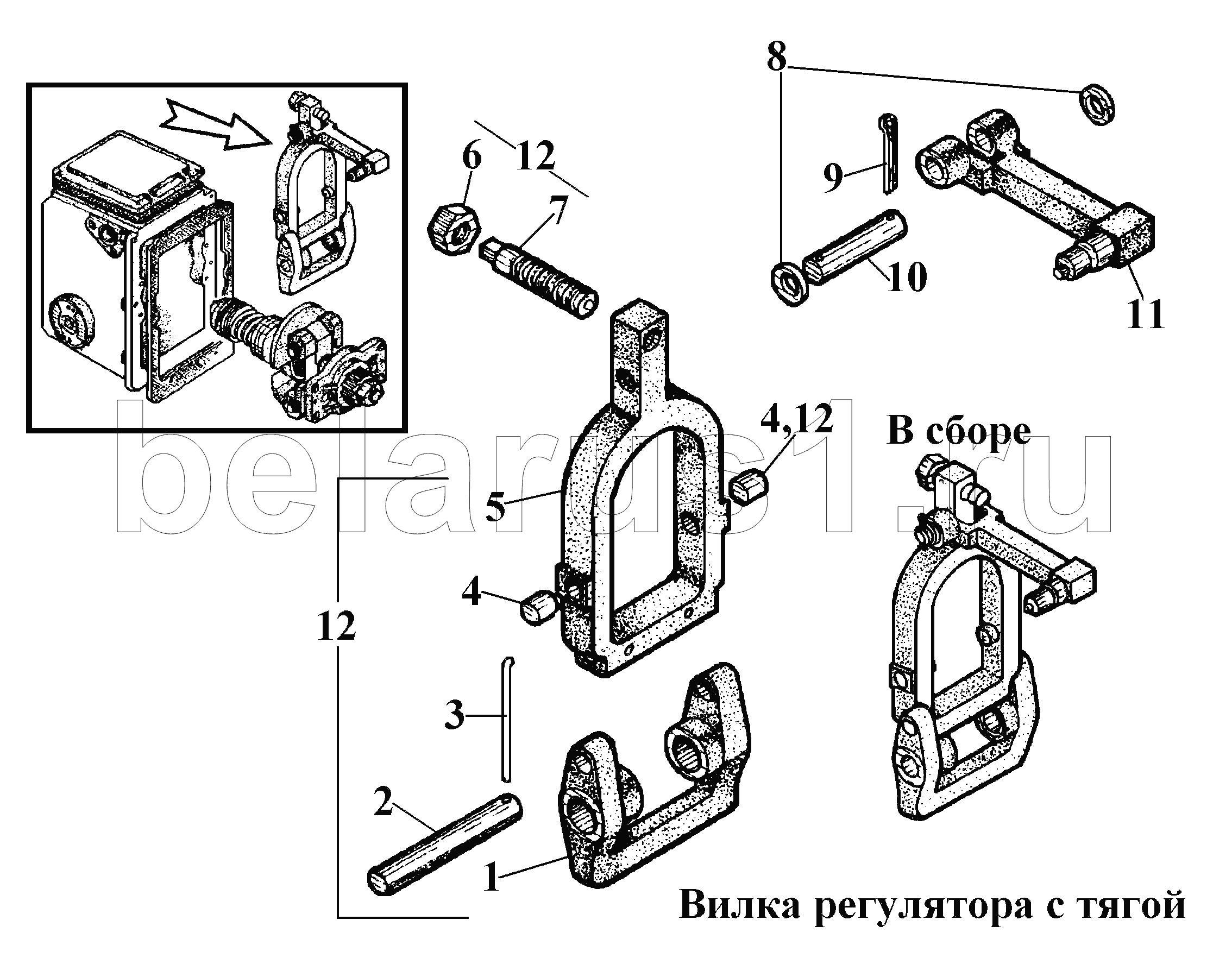 Каталог запасных частей к технике: ВгТЗ ВТ-100Д. Вилка регулятора с тягой
