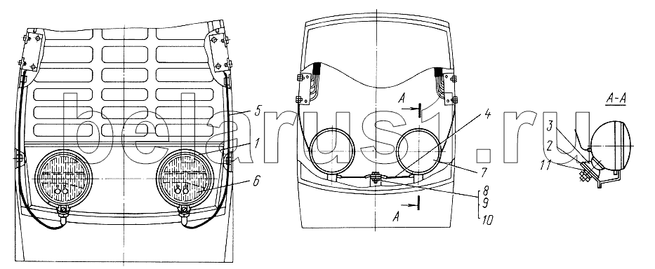 Каталог запасных частей к технике: ЮМЗ-6КЛ, (6КМ). Установка передних Фар