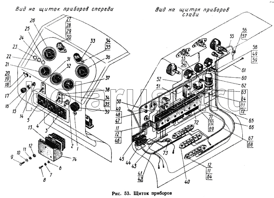 Каталог запасных частей к технике: ЮМЗ-6Л. Щиток приборов